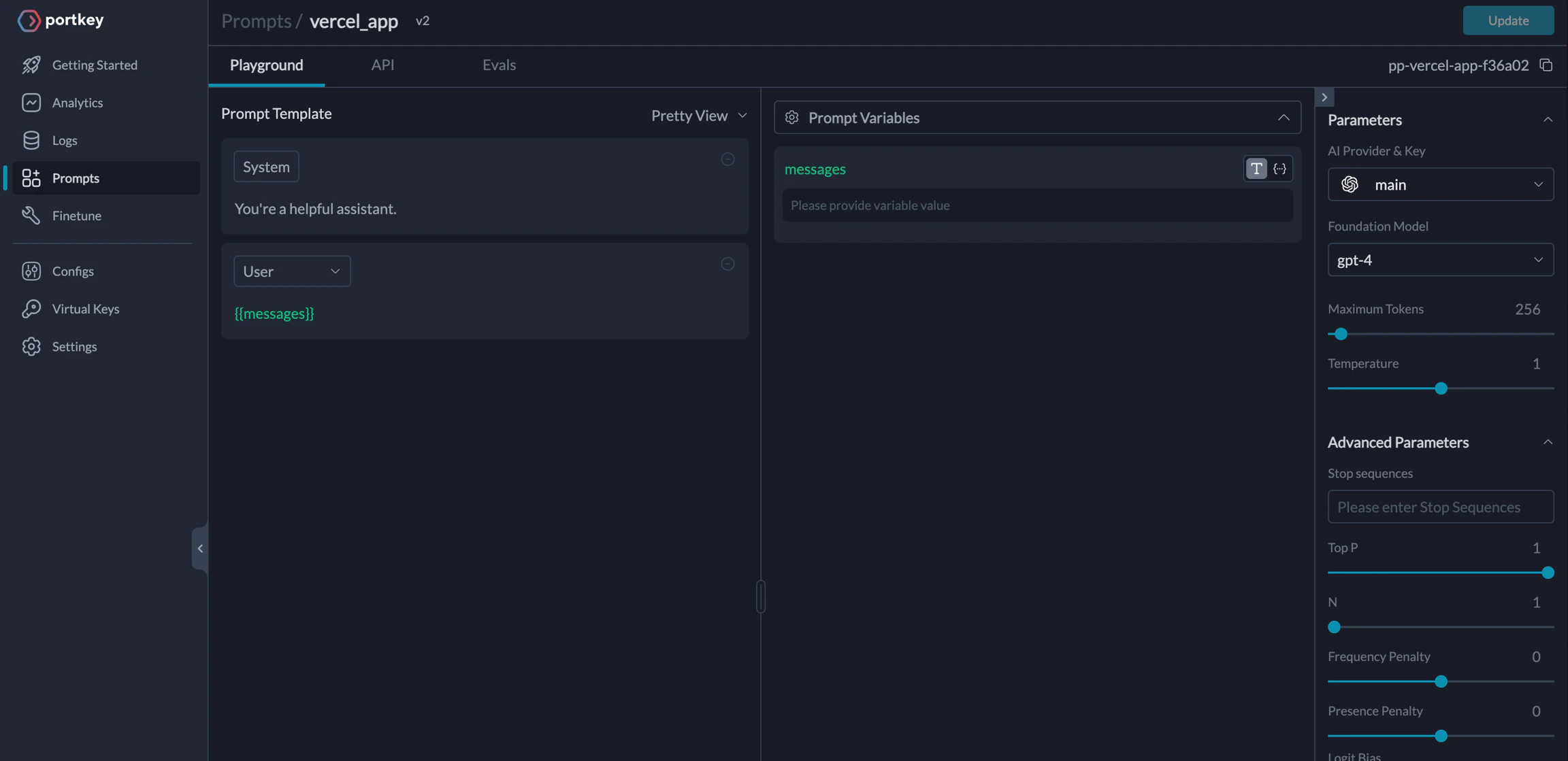 Storing prompt templates and instructions in code is messy. Using Portkey, you can create and manage all of your appβs prompts in a single place and directly hit our prompts API to get responses. Hereβs more on what Prompts on Portkey can do. To create a Prompt Template,- From the Dashboard, Open Prompts
