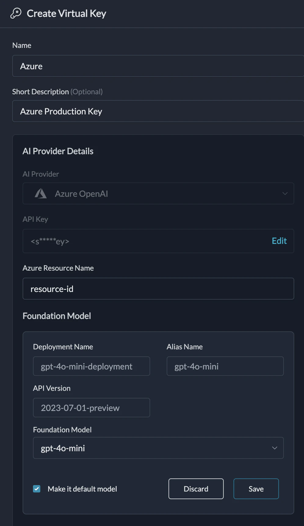 • Slug: A unique, URL-friendly identifier. This will be used by developers to call models (e.g., azure-prod-useast).